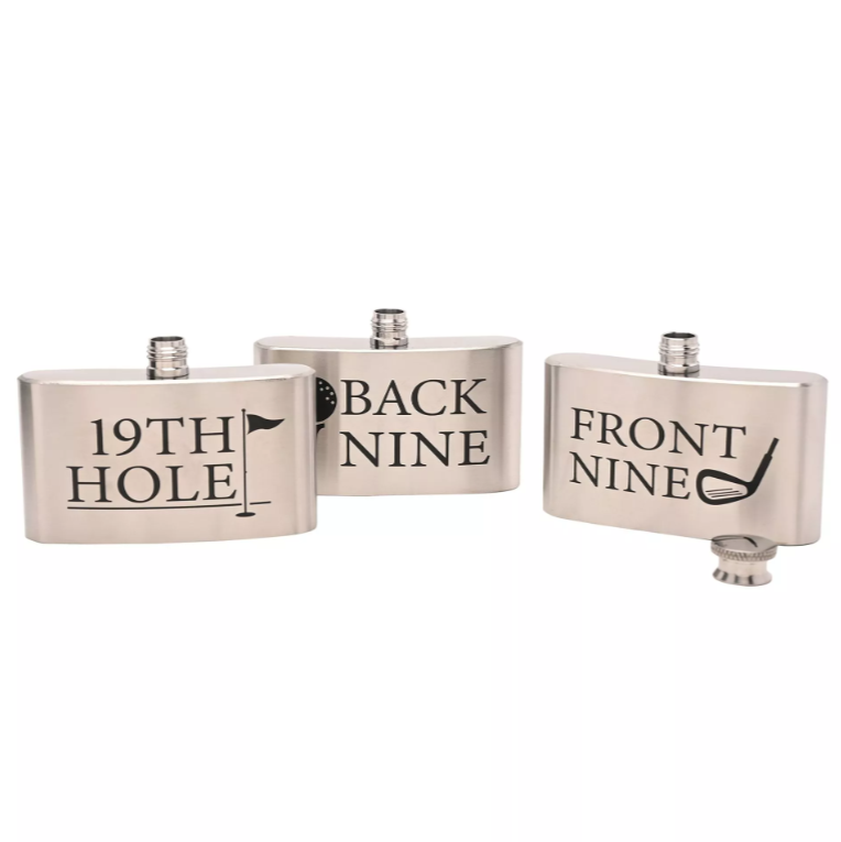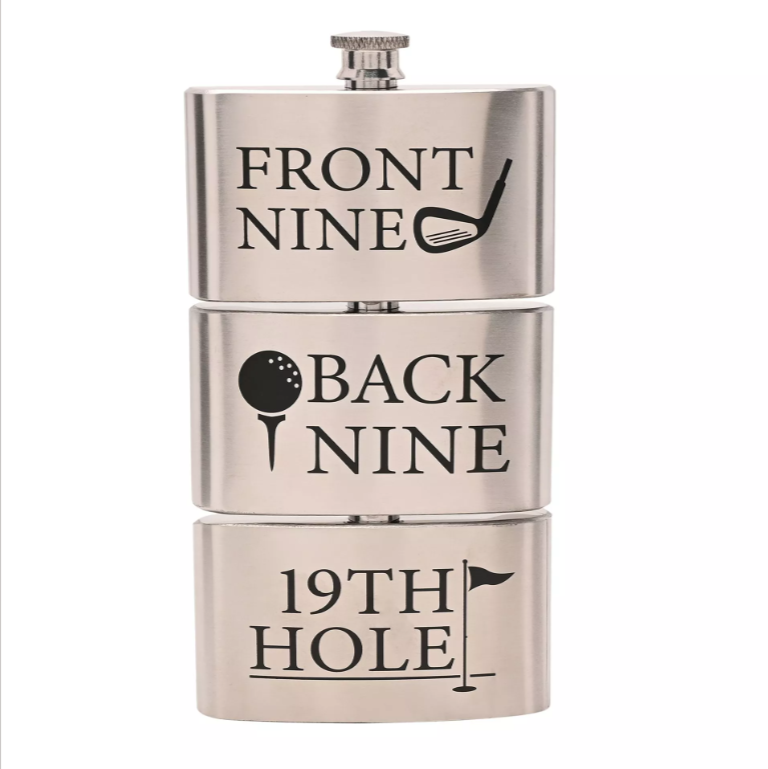 The 19th Hole is a great way to end your round of golf! The 19th Hole Golfers Flask is the perfect addition to your golf or barware collection. Featuring 3 separate reservoirs, you can now enjoy your favorite spirits on the front 9, back 9, and lastly, at the 19th hole!