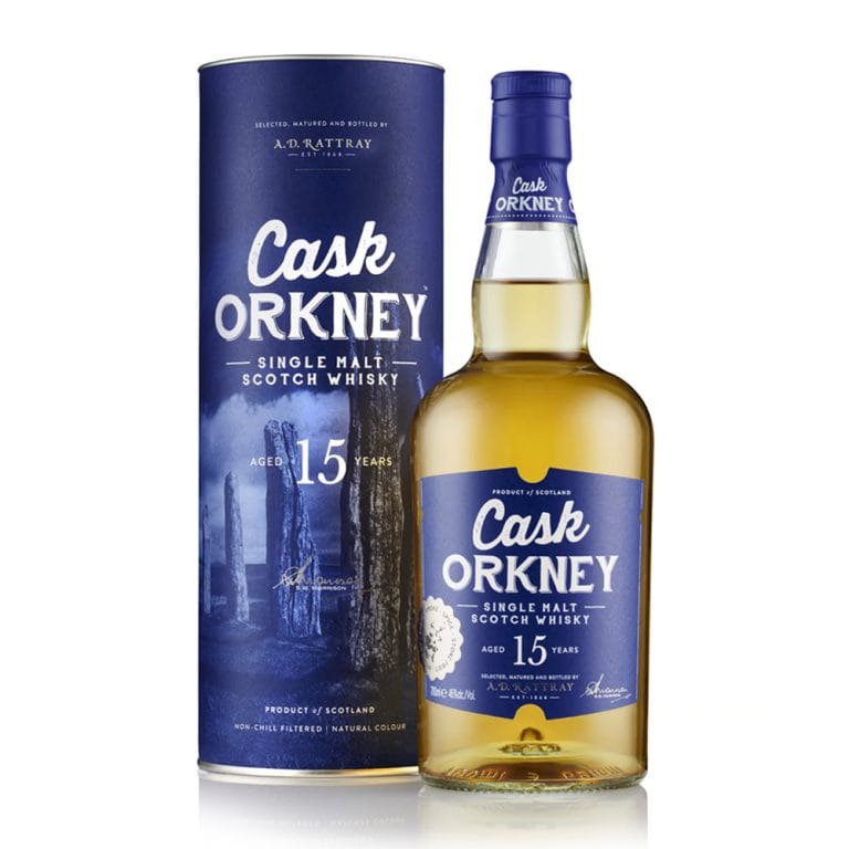 Cask Orkney 15 Year Old is a single malt Scotch whisky matured in ex-bourbon casks and bottled at 46% ABV. Crafted to celebrate the Neolithic folklore of Orkney, it captures the island’s spirit with a perfectly balanced and evocative profile. With a butterscotch gold hue, it opens on the nose with clover honey, Parma violet, ripe peach and wild heather embers. The palate follows with notes of grilled plum, barley sugar, noble hop and caraway, leading to a long, peppery smoke finish lifted by tart citrus and foraged pine.