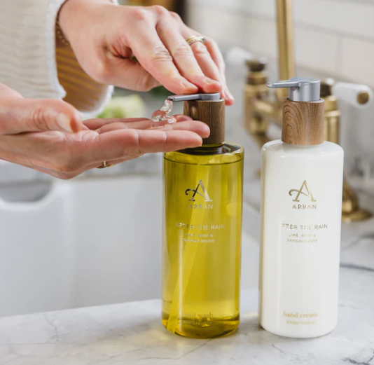 Our most celebrated scent, the refreshing After The Rain Hand wash draws its inspiration from the unspoiled Isle of Arran. Formulated with sandalwood and lime our signature fragrance gently cleanses and scents the skin. Blended with notes of rose petals and musk feel transported to an Arran garden following a rainstorm.