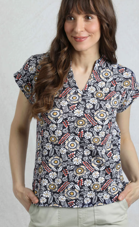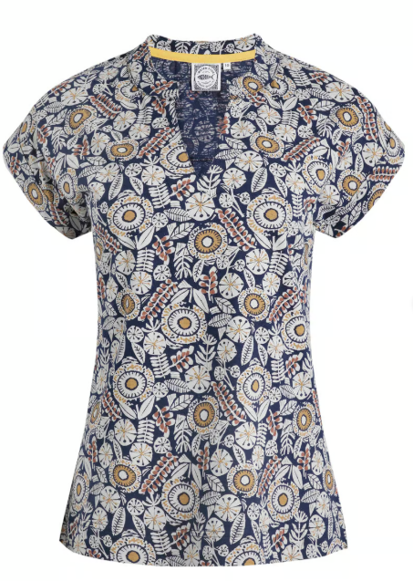A T-Shirt with a difference, the Alia Organic Cotton Printed Jersey Top has a trophy shaped neckline, and fixed, rolled sleeves. Available in a range of unique Weird Fish prints, you will be sure to find your favourite this season.