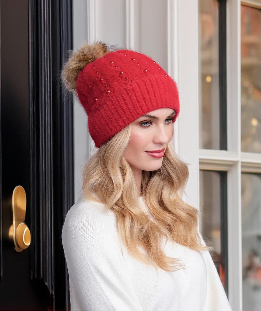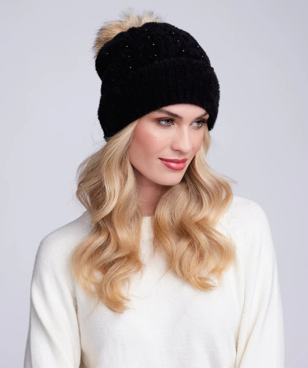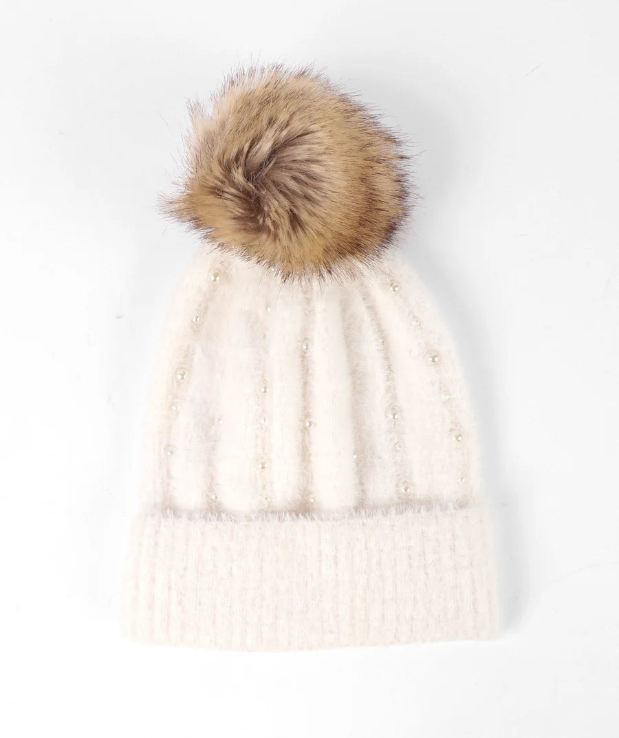 The Alora Embellished Pom Pom Hat is an altogether standout from our latest collection. Alora is a cosy double roll-up knit hat that comes in one size. All in all it`s sure to be an instant hit with its plush oversized contrast faux fur pom pom and also super soft fabric! Additional detailing comes in the form of the matching pearl embellishment giving it both lustre and sparkle. Add a touch of luxe to your winter accessorising this season by taking Alora into your seasonal edit.