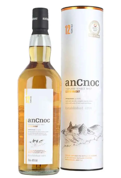 Knockdhu renamed their whiskies anCnoc [a-nock] to avoid confusion with the nearby Knockando distillery. This is a whisky that has something for everyone, with every sip delivering a surprise. Its light and smooth but challenging and complex. Gentle amber in colour, a sweet taste to start with giving way to a long smooth finish. An aromatic fragrance with a hint of lemon and honey.