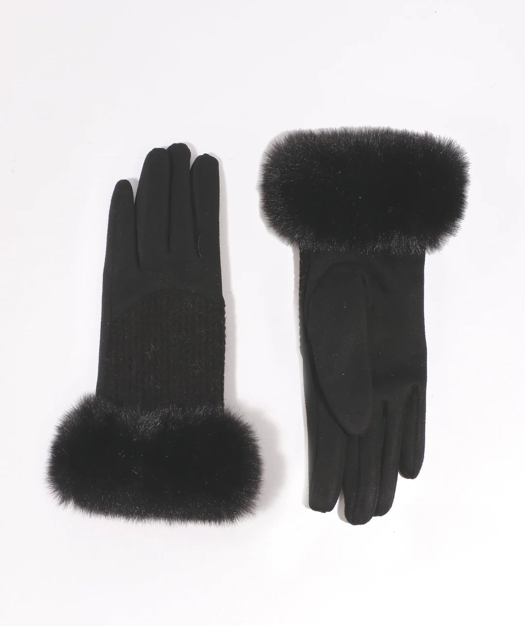 Elevate your winter fashion with our Aria Glove. This fully lined glove features a luxurious faux fur cuff and a faux suede glove for a sleek and sophisticated look. Stay warm and stylish with the stylish cable knit texture detail and the plush faux fur cuff that provides extra warmth. The cozy lining offers insulation, making this one-size glove a must-have accessory for the colder months.