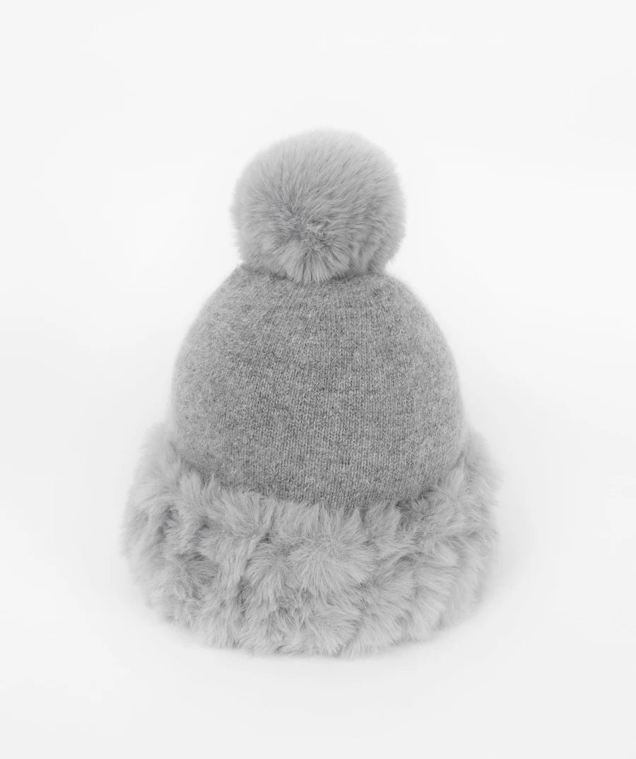 Bailey - Silver Grey Knitted Beanie Hat with matching Faux Fur Cuff and Pom Pom