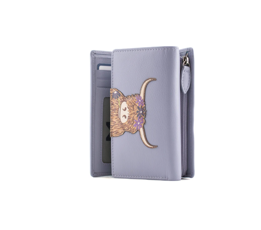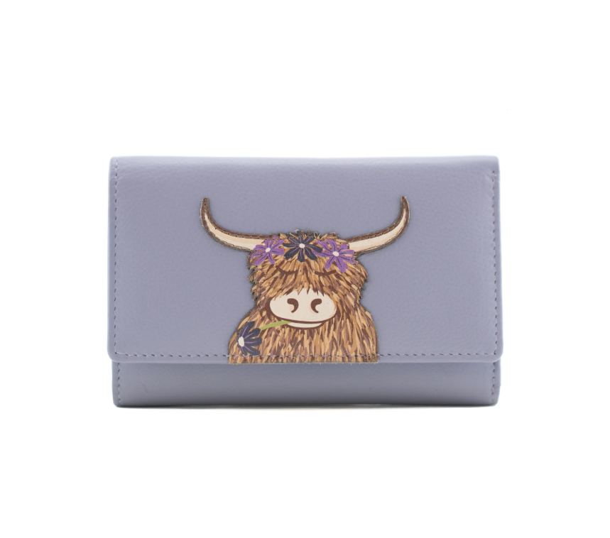 Bella Highland Cow Large Tri-fold Purse - Purple