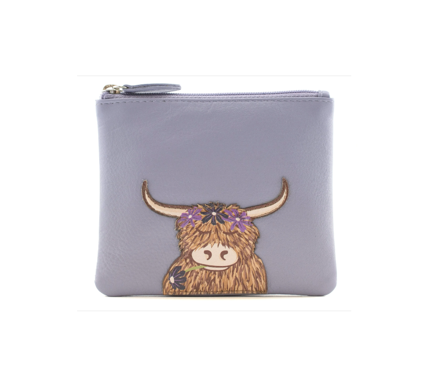 Bella Highland Cow Soft Leather Coin Purse - Purple
