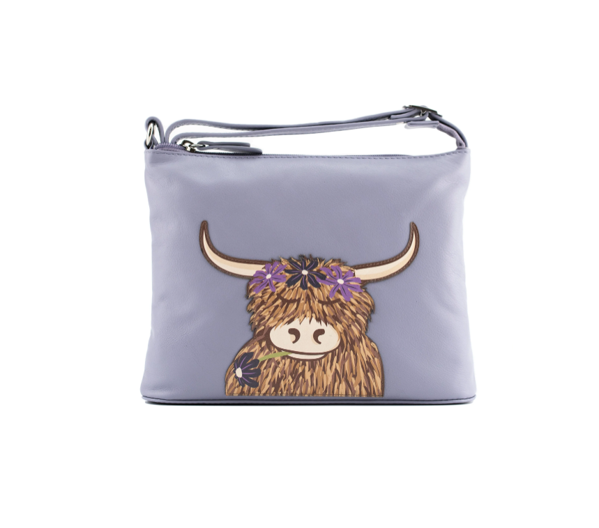 Bella Highland Cow Midi Crossbody Bag - Purple
