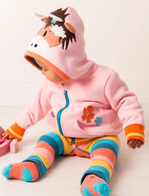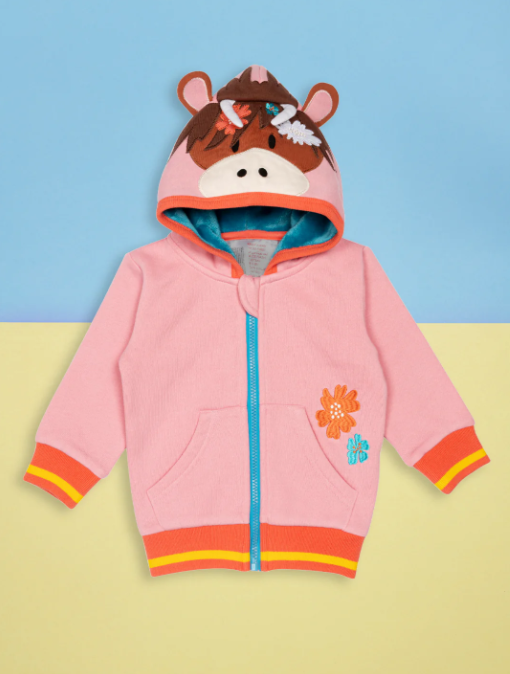 Our new pink hoodie features a hood with our new Bonnie Highland Cow face with perky ears and horns. Ideal if your little one likes standing out from the crowd or if they love anything nature related!