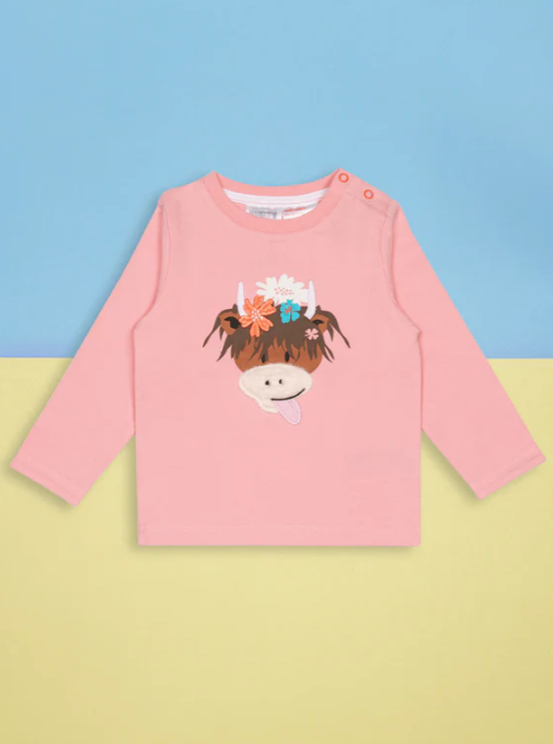 This funky top is perfect for toddlers and features a playful print of Bonnie the Highland Cow on the front.