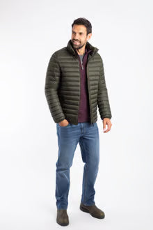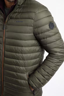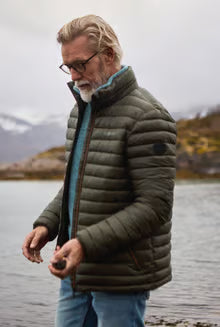Our Crantock Lightweight Showerproof Padded Jacket is the perfect light layer for your adventures this season. It's showerproof with a contrast colour lining, elasticated cuffs, and a terrain-inspired silicon badge on the left arm. The lightweight, wadded design is great at keeping the cold drafts at bay, and it is easy to pack into a bag, and doesn't take up much space, making it an ideal travel companion. If you prefer a jacket with a hood, check out the Flete jacket.