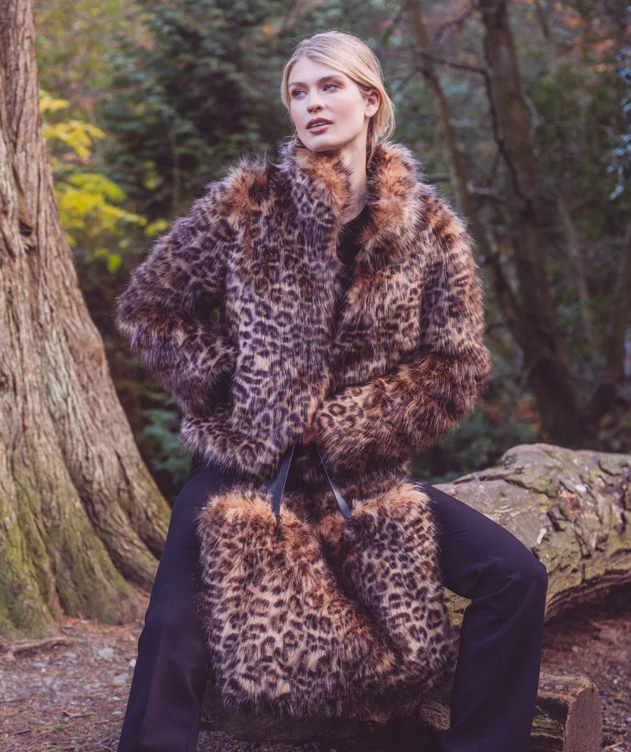 Delevigne - Leopard Print Waist Length Faux Fur Coat