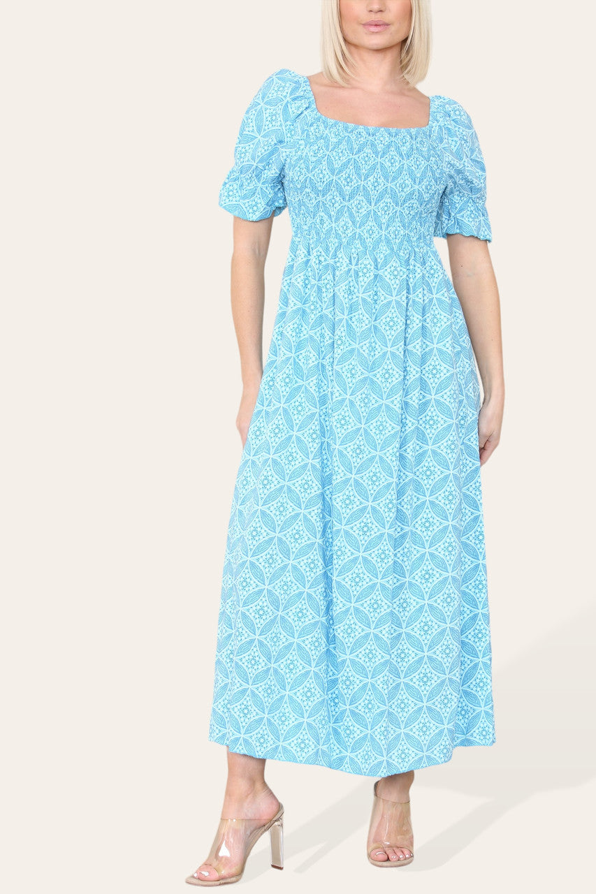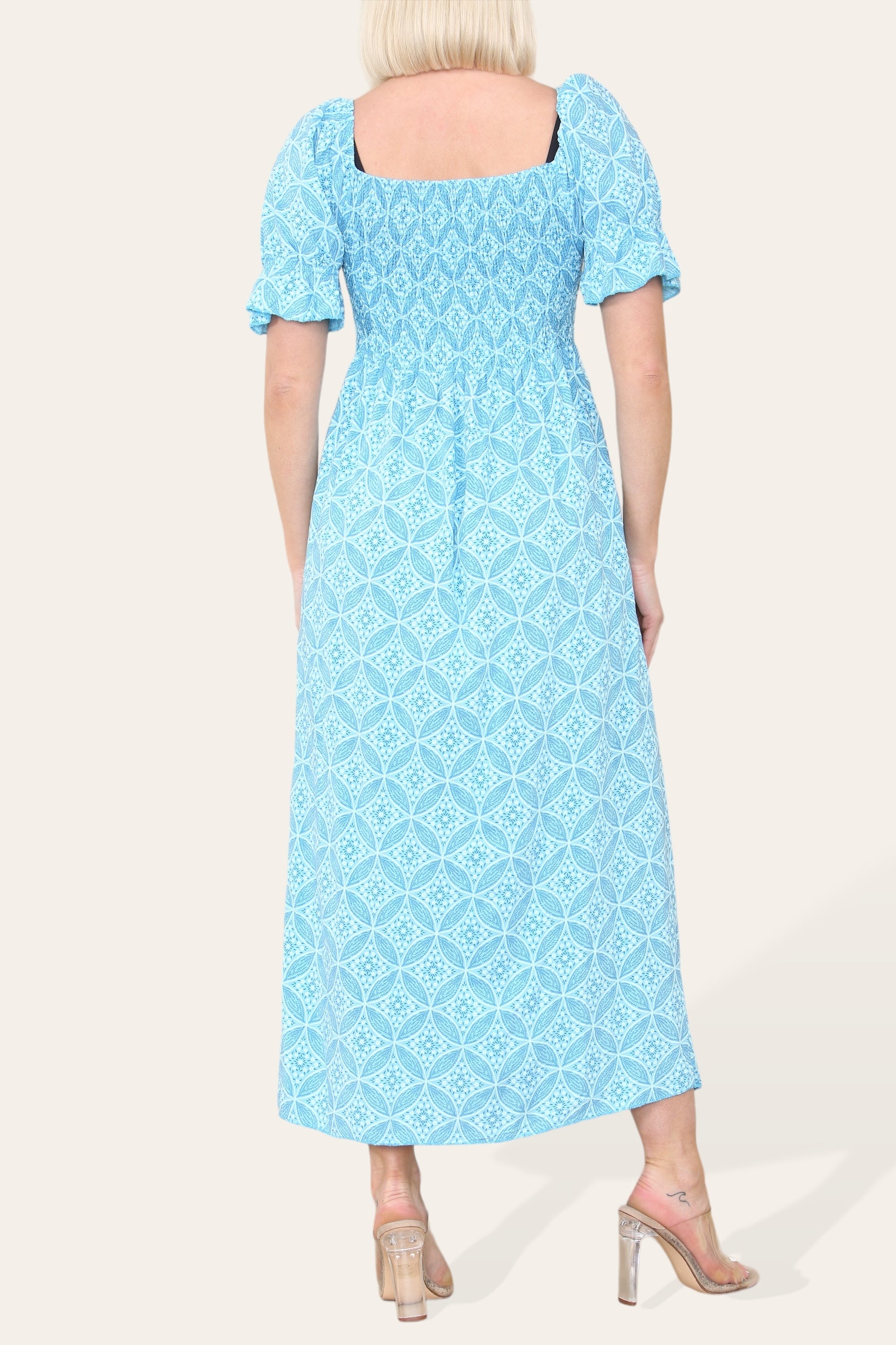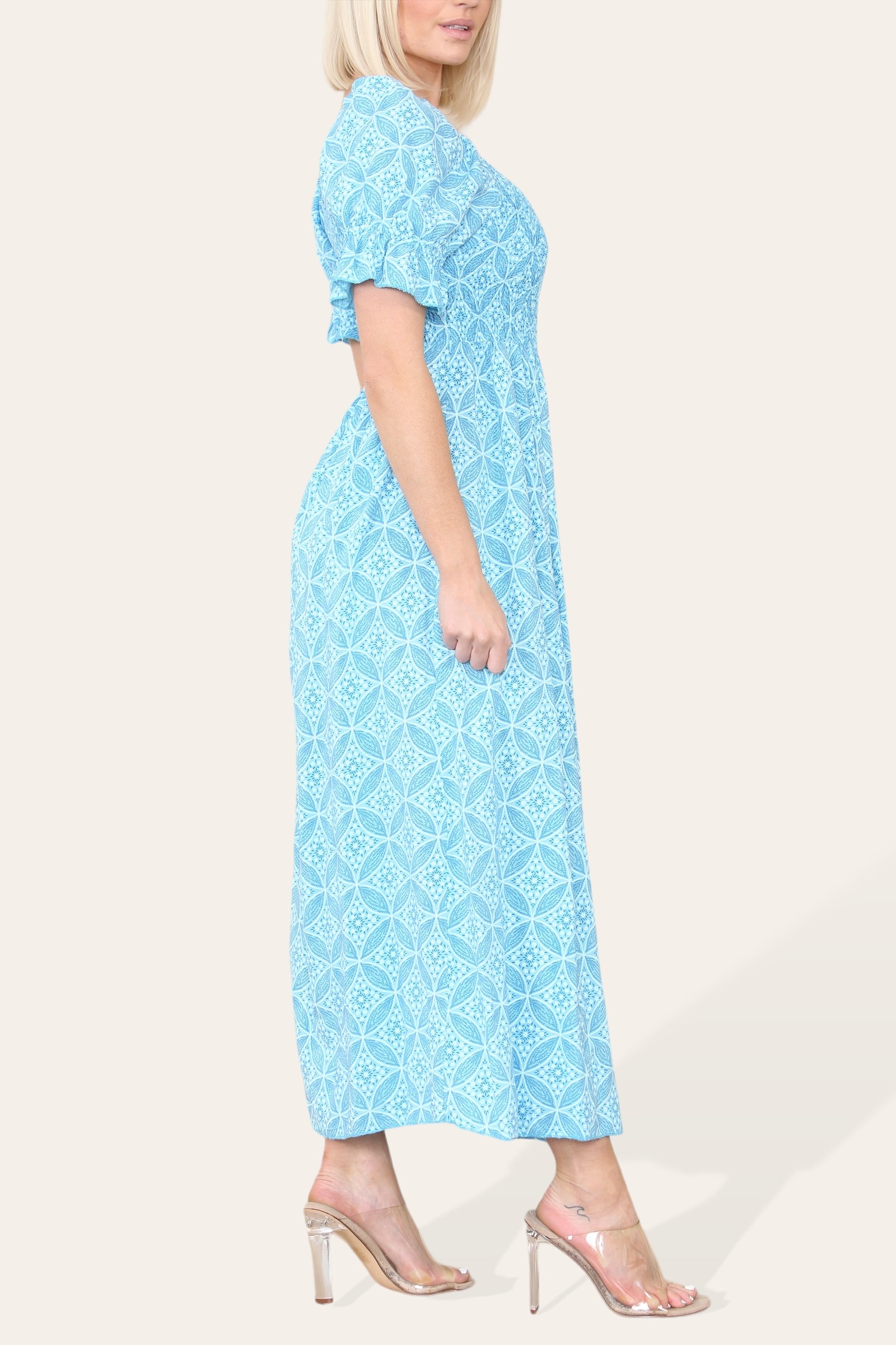 Ditsy Geometric Floral Bardot Maxi Dress - Turquoise