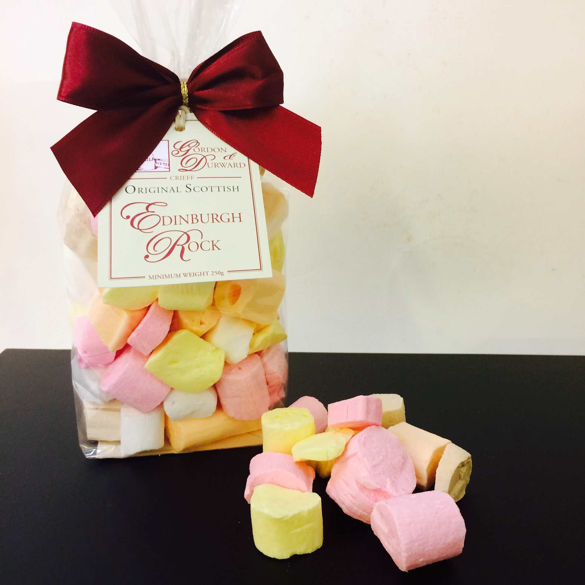 Edinburgh Rock, soft Scottish Edinburgh Rock just melts in the mouth, and the bag looks terrific, any one would be delighted with this as a present. Packed in a large 250g bag.
