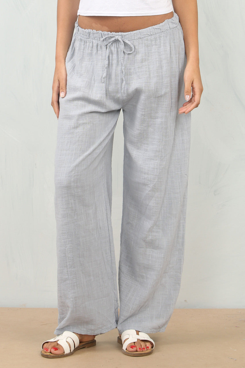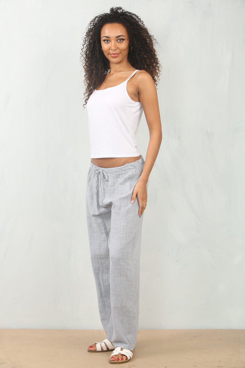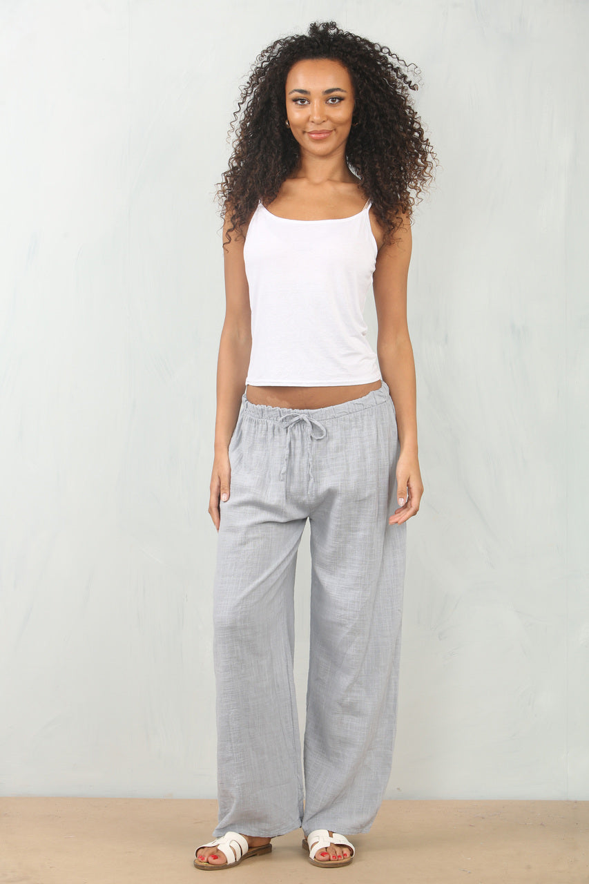 Stay cool and comfortable in our Elasticated Waist Cotton Trousers in grey. Made from 100% cotton, they offer a breathable, relaxed fit with a flexible waistband. One size fits UK 8–16 — perfect for everyday ease and effortless style.