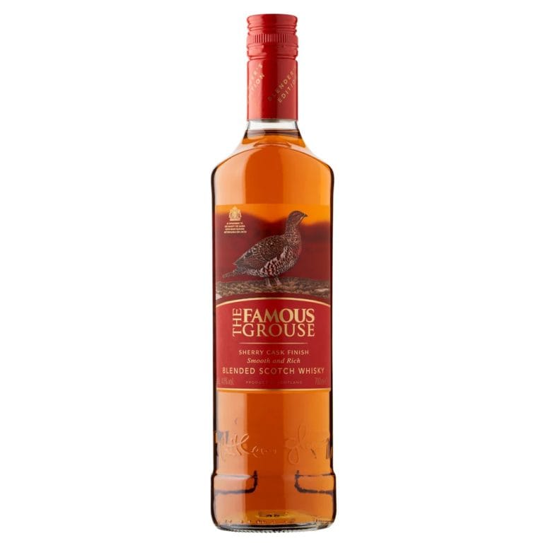 The Famous Grouse Sherry Cask Finish is a rich and flavourful blend that marries Scotland’s favourite whisky with the influence of Spanish oak. Matured in sherry-seasoned casks, it offers an enticing aroma of fresh orange, poached pear, cherry blossom, sultanas, cocoa beans and sweet spice. The palate is smooth yet full of character, combining oaky vanilla, dark chocolate, maple syrup and toasted nuts. Dark red-gold in appearance with an amber glow, it finishes long, rich and warming, with dried fruit and sweet spice lingering on the palate. Bottled at 40% ABV in a 70cl format.