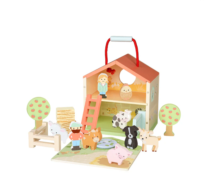 This fun and interactive playset features all sorts of exciting characters, such as the farmer, his wife and a selection of different farm animals. Remove the magnetic front panel to reveal a meadow, muddy pen and removable pond piece - perfect for setting up all the farm animals! Help your little ones learn all about the different animals they might encounter at the farm and where they set up their homes, from the cosy barn to the muddy pig pen and even the upstairs hen house. Perfect for children with imaginative minds and an eagerness to play.