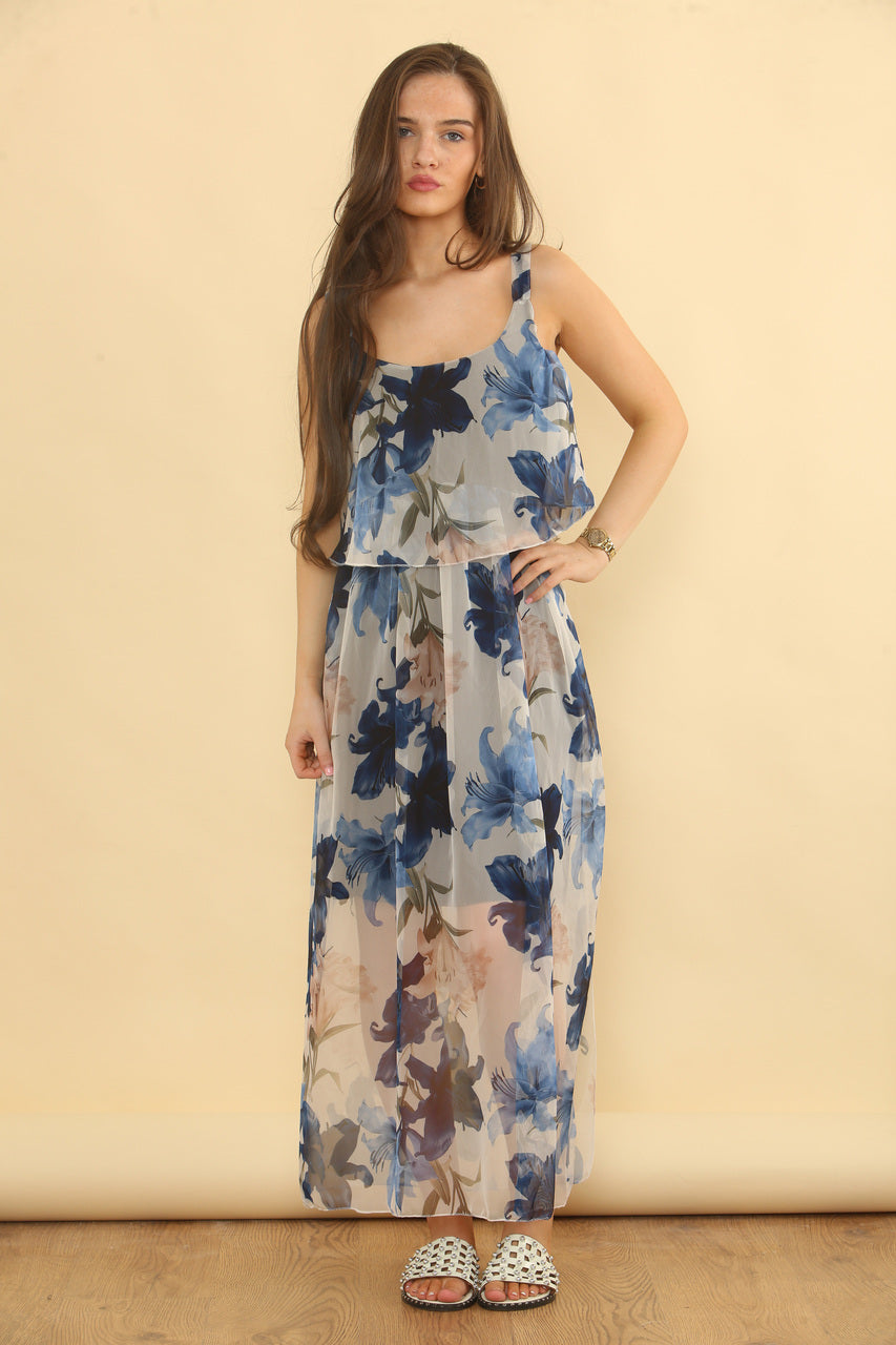 Floaty Tier Floral Print Sleeveless Dress - Navy