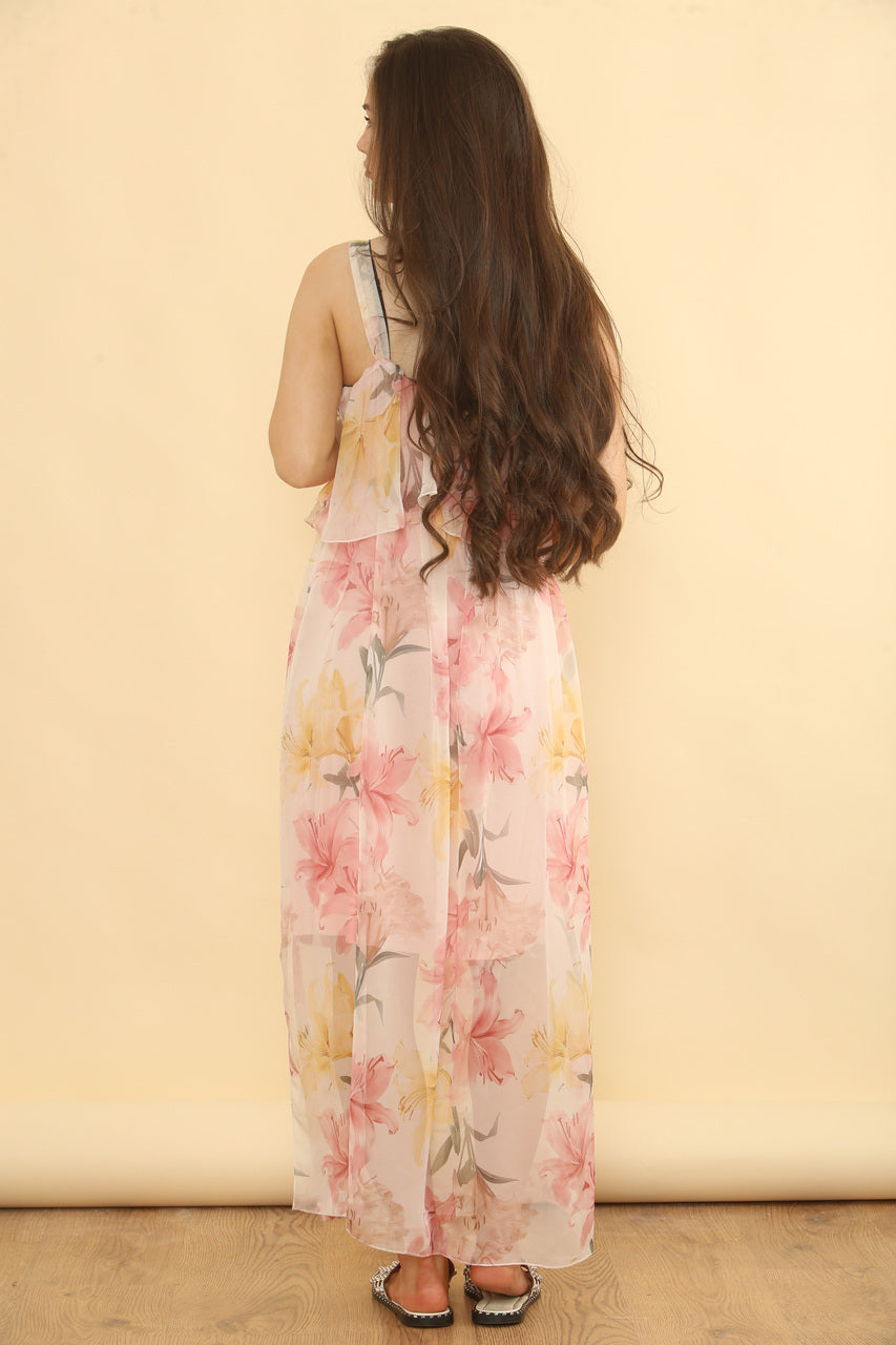 Floaty Tier Floral Print Sleeveless Dress - Pink
