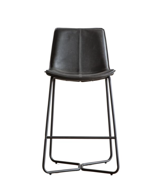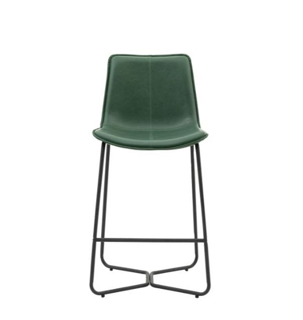 A beautiful curved design stool, perfect for kitchen counters, bars and breakfast stations. in a supple deep green leather upholstered finish, combining comfort and style.