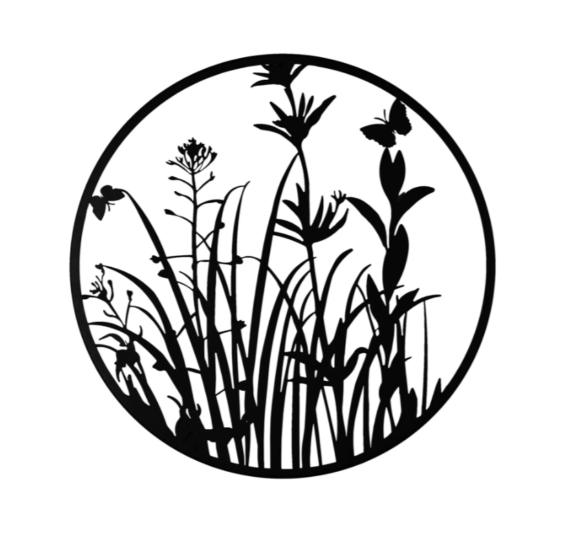 Bring the beauty of a wildflower meadow to outdoor walls with this charming circular metal wall art. Featuring an intricate design of lush plants and foliage, it adds a delightful natural touch to any space.