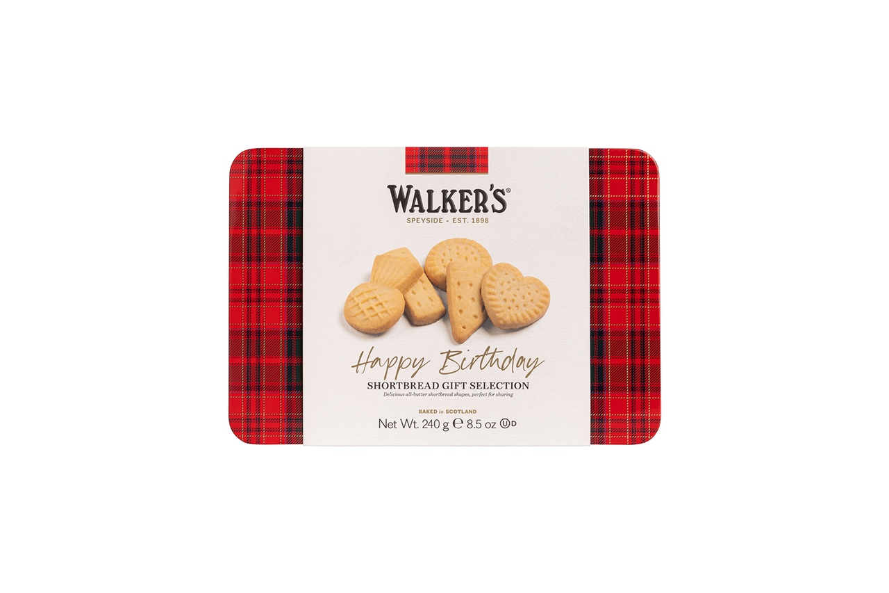 Birthdays are always a special occasion which deserve to be celebrated and now you can give the gift of Walker's Shortbread with our newly released 'Happy Birthday' shortbread assortment tin. Each tin contains 21 of Walker's Shortbread's most celebrated shortbread pieces, including our classic shortbread fingers, shortbread triangles, shortbread rounds, shortbread thistles and shortbread hearts. The newly designed tartan tin is completed with a wrap round sleeve, showcasing the 'Happy Birthday' message.