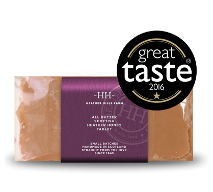 A delightful all-butter, melt-in-the-mouth gourmet tablet, handmade in small batches using only the finest ingredients. Made to a traditional recipe and infused with our signature Scottish Heather Honey traditionally gathered from wild flowering heather from the Scottish Highlands since 1945. A sweet gem that makes for a superb ending when served after dinner with coffee or as a pick-me-up on a dreich day. Great Taste 2016 1-star Award-winner.