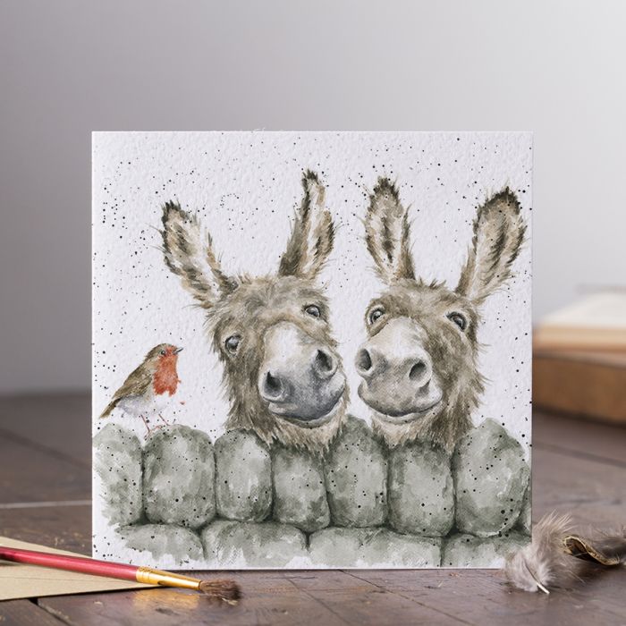 Featuring two loveable donkeys, this card is perfect for any occasion. The image is printed on high quality, sustainably sourced textured board and is left blank inside for your own message. Supplied with a recycled kraft envelope and measures 150mm x 150mm.