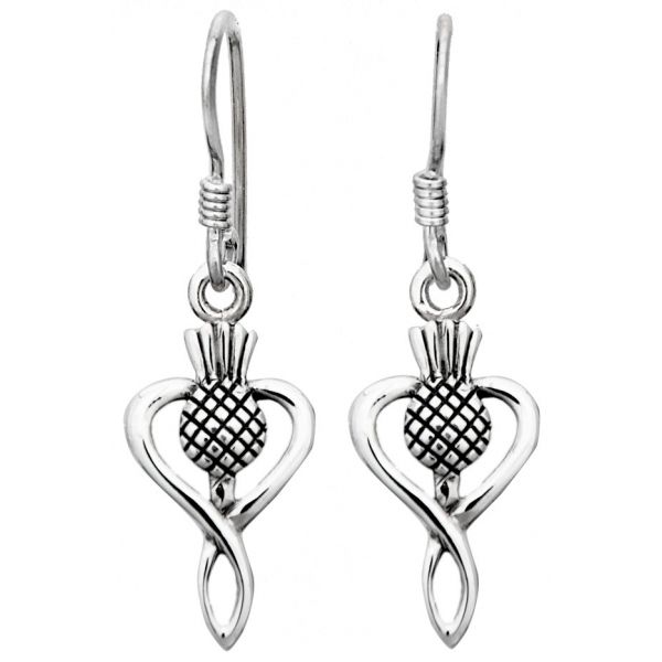 Sterling Silver Scottish Thistle Drop Earrings, highly polished , complete in a quality gift box The thistle design is 15mm in length by 10mm at the widest point