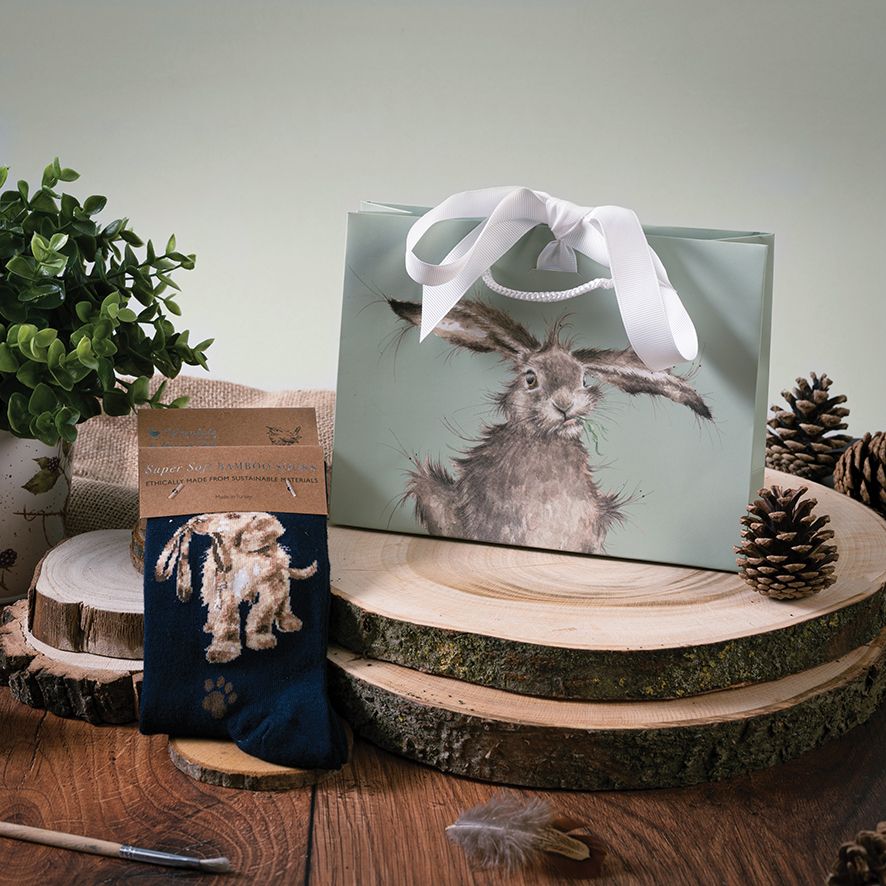 A treat for your feet, this wonderful pair of socks features an artistically depicted dog stitched onto super soft bamboo material. One size (women's 4–7) . Viscose derived from bamboo with nylon stitching. Machine washable. Each pair of socks comes with a beautifully illustrated gift bag making a wonderful gift.
