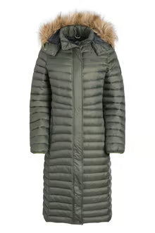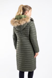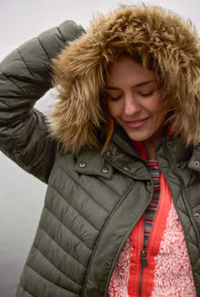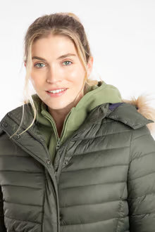 Ideal for Autumn, the Kempley Lightweight Padded Midline Hooded Jacket is longer for extra warmth, and is lightly wadded, so it packs a warm punch, without the weight. The faux fur-trimmed hood can be removed and is attached with poppers. The internal lining is a contrasting colour, and we have added a double-ended zip for ease and flexibility. Complete with hand zipped pockets and elasticated cuffs.