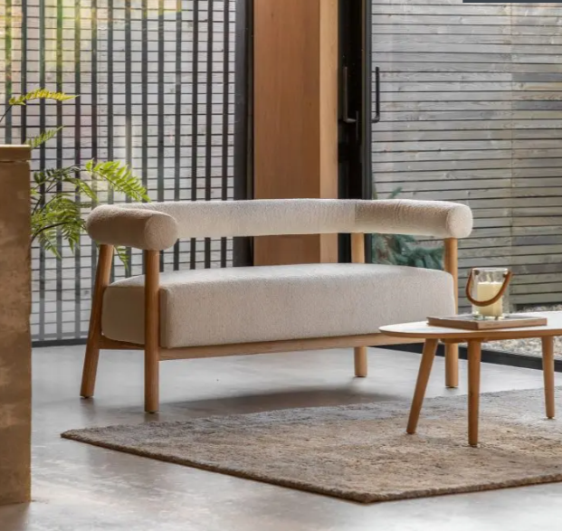 This sofa is a stunning piece of furniture that combines modern design with timeless elegance. Its unique curved shape and solid wood frame create a sculptural silhouette that is both eye-catching and comfortable. The plush upholstery and generous proportions make it the perfect place to relax and unwind.