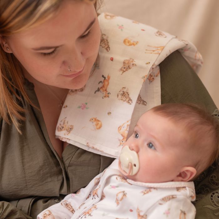 Made from 100% organic cotton, this beautiful 'Little Forest' muslin cloth gift set is perfect for a variety of uses and makes a great gift. This set includes two cloths, one patterned and one with larger designs in the corners on a light pink coloured background. Packaged in a beautiful gift box. Cloths measure 700mm x 700mm, sizes may vary slightly due to nature of product