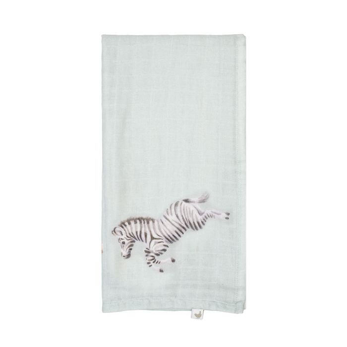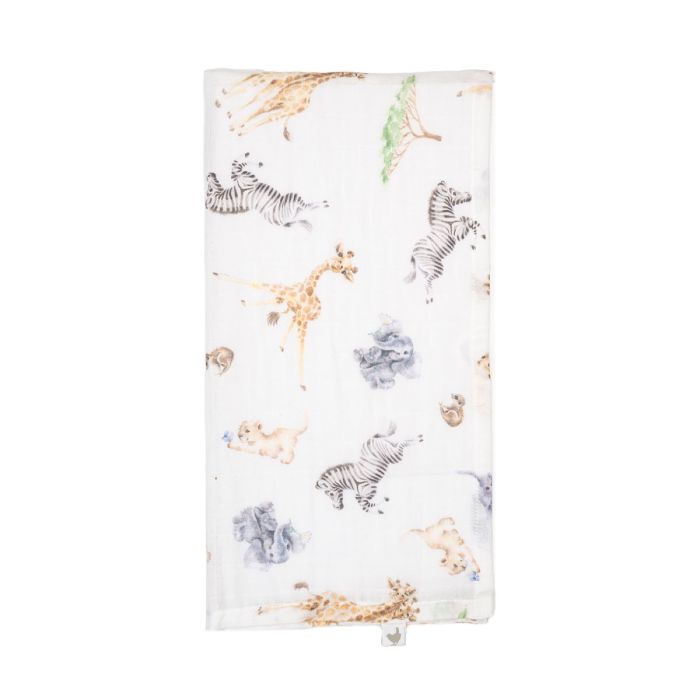 Made from 100% organic cotton, this beautiful 'Little Savannah' muslin cloth gift set is perfect for a variety of uses and makes a great gift. This set includes two cloths, one patterned and one with larger designs in the corners on a light green coloured background. Packaged in a beautiful gift box. Cloths measure 700mm x 700mm, sizes may vary slightly due to nature of product.