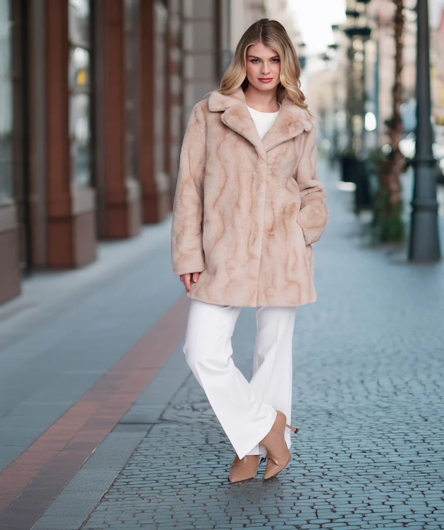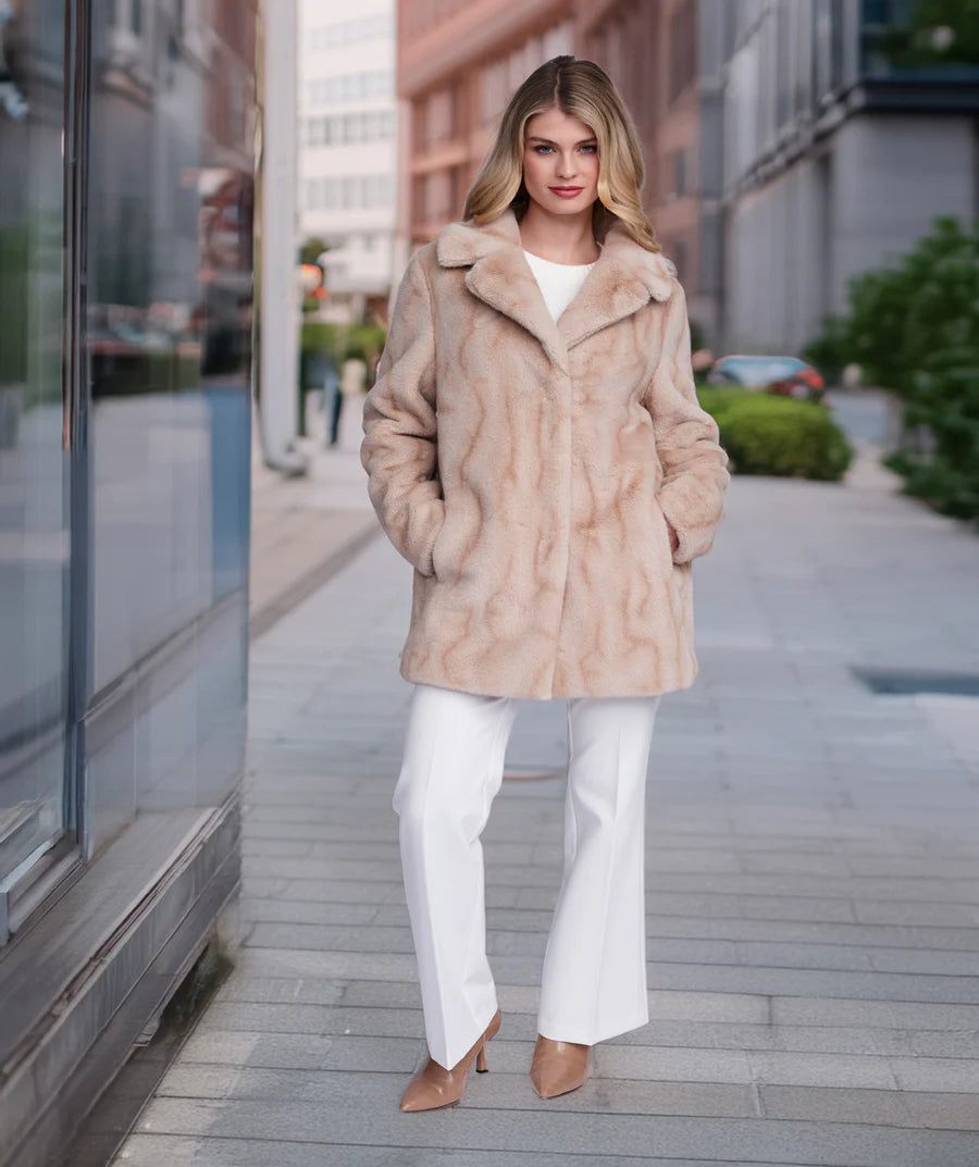 Marilyn - Softly Marled Honey 3/4 Length Faux Fur Coat