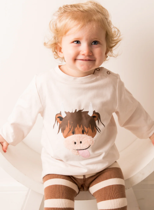 Dress your little one in the cutest top around with our new Neutral Hamish Highland Cow top, featuring our super soft fleece on the nose of our newest character!