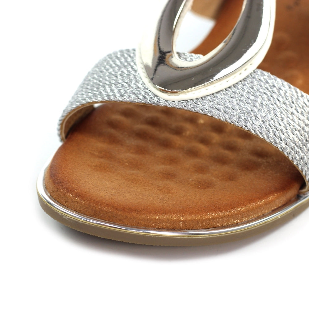 Slip into the Portland sandal and step up your summer style game. This white mule boasts a silver metallic strap and silver brooch decoration for sophisticated glitz. Comfort is not compromised; with a padded insole you’ll experience all-day cushioning.