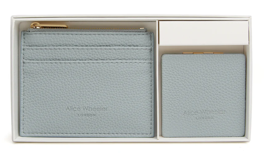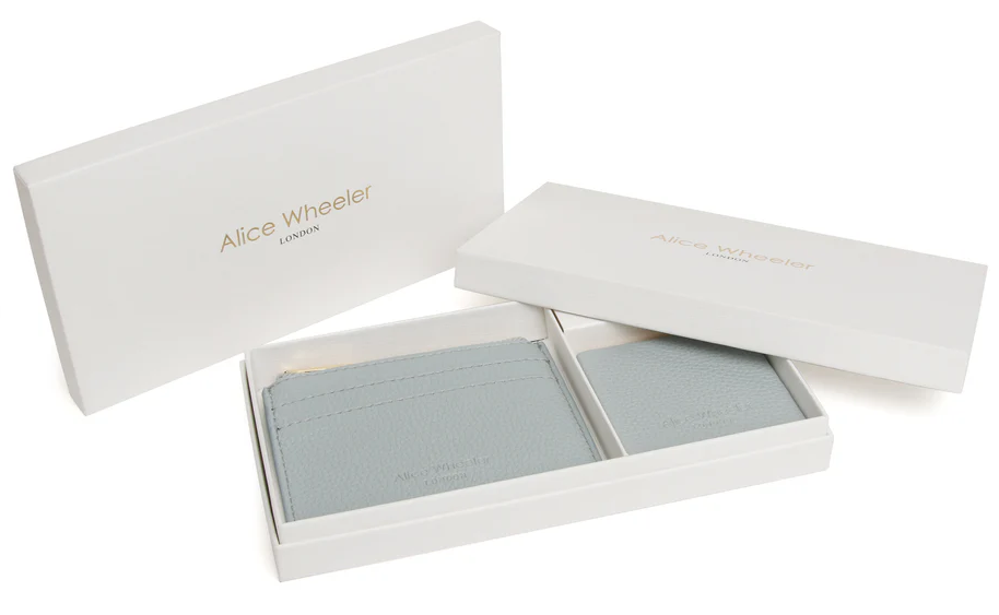Presented in a luxurious white gift box, the set includes a Verona coin and card purse, crafted from smooth vegan leather for a touch of elegance. The purse is designed to be compact, easily fitting into a pocket or purse, yet it provides ample space for coins and cards.
