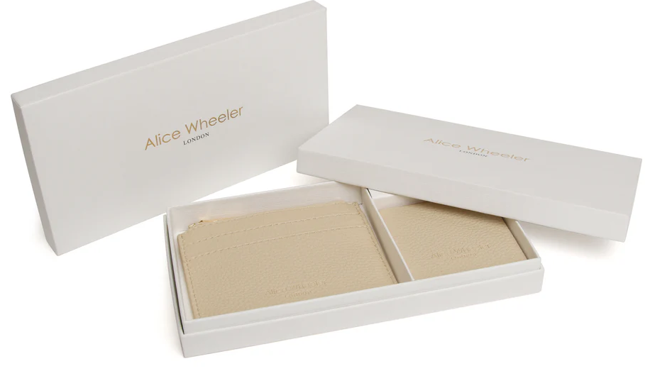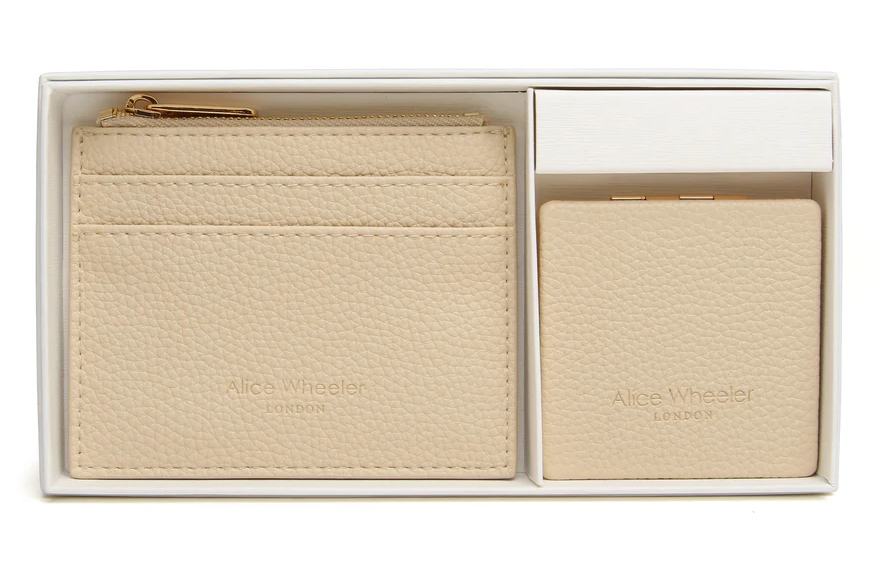 Presented in a luxurious white gift box, the set includes a Verona coin and card purse, crafted from smooth vegan leather for a touch of elegance. The purse is designed to be compact, easily fitting into a pocket or purse, yet it provides ample space for coins and cards.