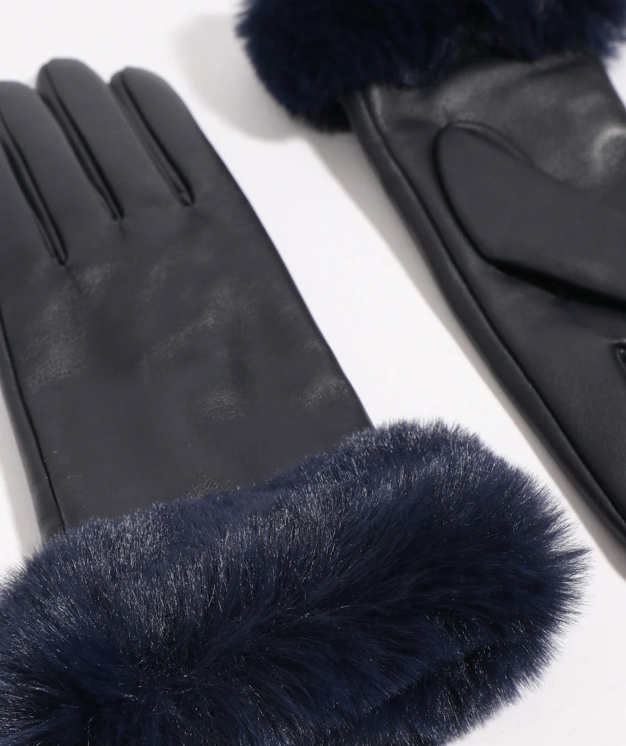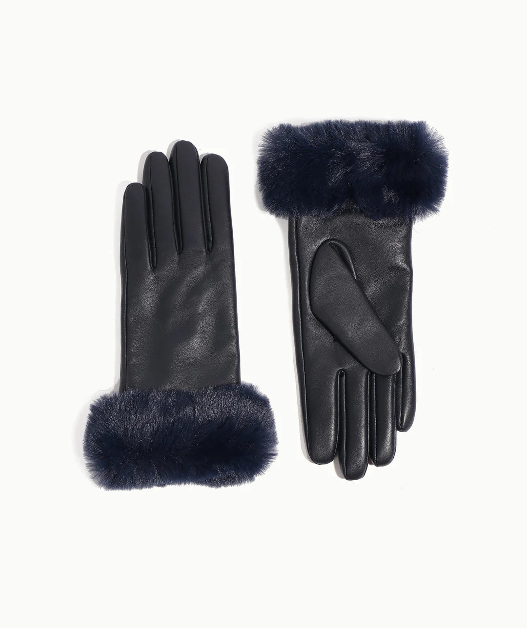 Roma - Navy Lined Leather Gloves with Faux Fur Cuff