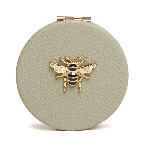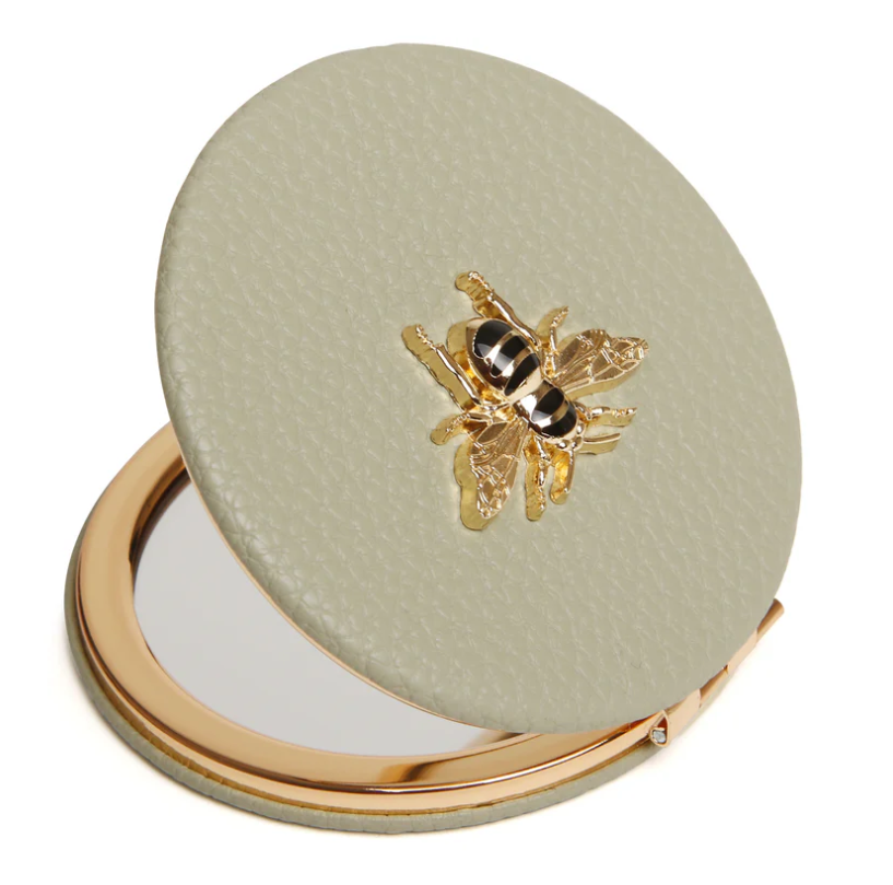 Discover the perfect blend of style and function with this exquisite compact mirror by Alice Wheeler London. Crafted with twin gold-toned metal frames and finished in luxurious vegan leather, this mirror features both standard and 1x magnification. Adorned with Alice's iconic honey bee, it arrives in a beautifully textured gift box with a custom-molded insert, ensuring safe travel and elegant presentation. Its compact 7cm diameter makes it ideal for handbags and Alice Wheeler accessories