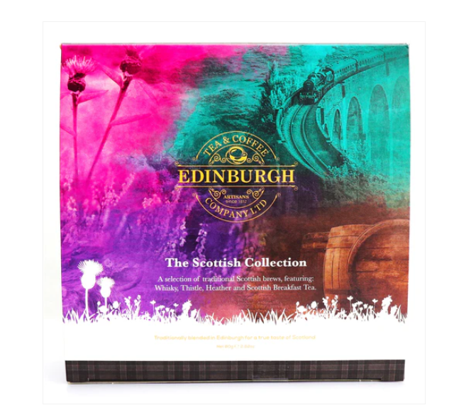 A selection of traditional Scottish brews, featuring: Whisky, Thistle, Heather, and Scottish Breakfast Tea.