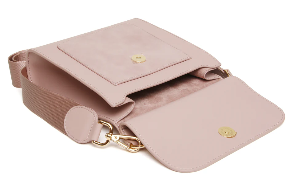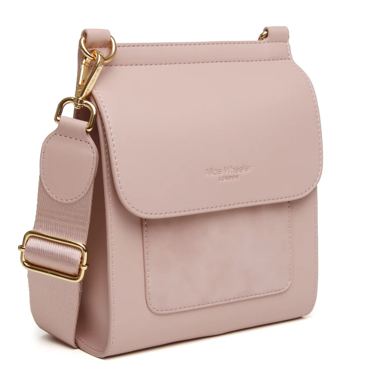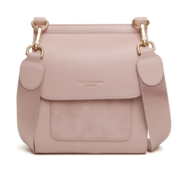 This bag is a twist on our classic Bloomsbury style satchel design with a vegan Nappa material and a suede accent on the front.