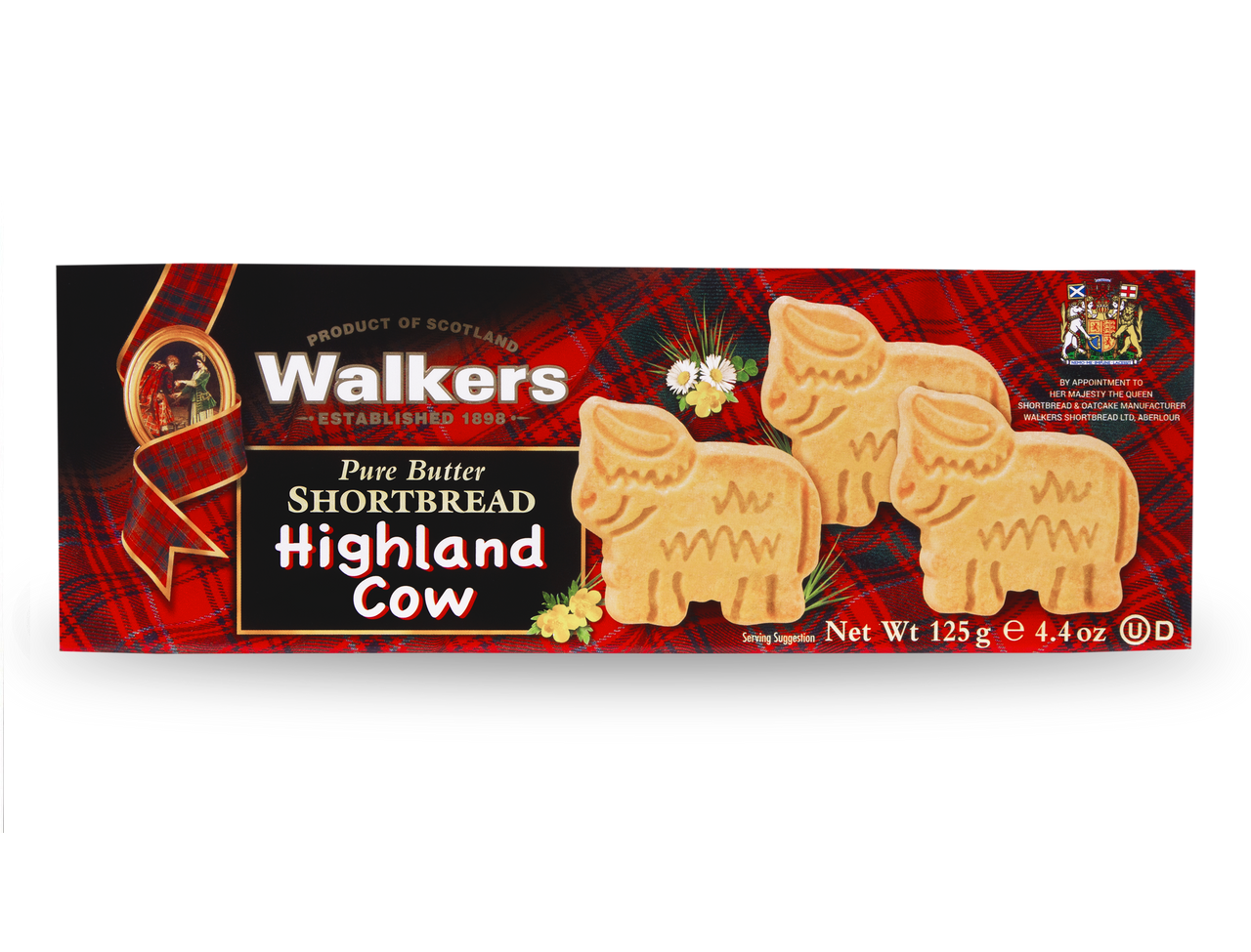 Walker's pure butter shortbread highland cow is a new novelty product containing nine delicious shortbreads. These cute Highland Cow shortbreads are the perfect gift from the home of Walker's Shortbread - based in Aberlour the heart of the Scottish Highlands. Attractively packaged in Walker's familiar red tartan livery.