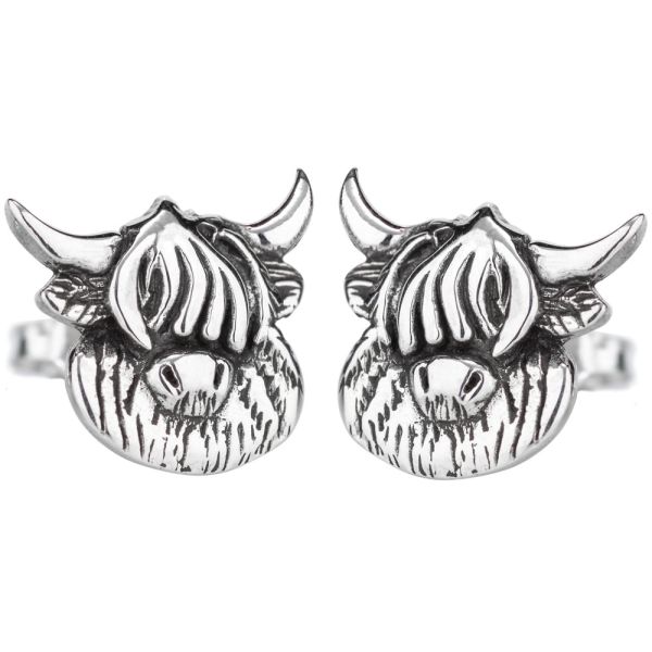 Sterling Silver 3D Highland Cow Stud Earrings 11mm by 10mm supplied in our Quality Recyclable gift box.
