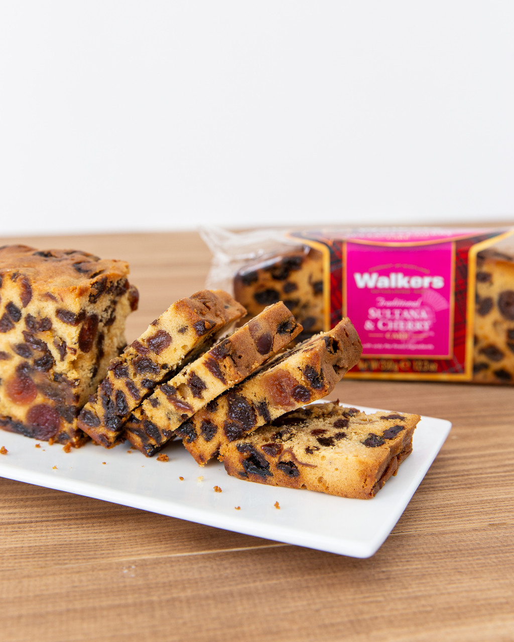 Walker's Sultana and Cherry Slab Cake is baked to a traditional Scottish recipe with generous amounts of ripened sultanas and glacé cherries.