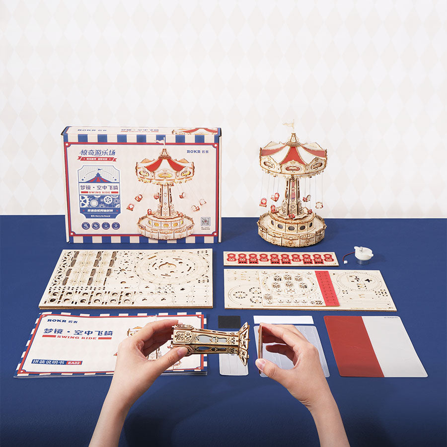 Build a swing ride music box with your own hand. Please fasten your seat belt, the ride is about to begin! See more in our Carnival range
