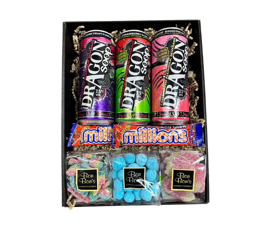 Turn up the energy with ourĀ Dragon Soop HamperĀ ā a bold and exciting mix of high-energy drinks and sweet treats. Perfect for gifting, parties, or a fun night in, this hamper is packed with flavour and guaranteed to make an impression.