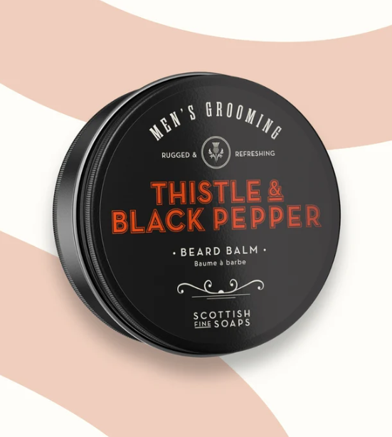 Maintain well-groomed beard with the Thistle & Black Pepper Beard Balm. This nutrient-rich formula is infused with avocado oil to condition and nourish, while vitamin E repairs and strengthens facial hair. With a light, bold Thistle & Black Pepper fragrance, it keeps your beard soft, manageable and subtly scented for a refined grooming experience.