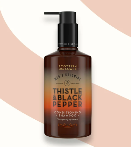 Add a touch of refinement to your grooming routine with the Thistle & Black Pepper Conditioning Shampoo. Lightly scented with the warm, bold notes of black pepper, this shampoo is enriched with soothing hop extract to promote healthy hair growth and natural shine. Infused with magnesium, it strengthens your hair, leaving it soft, smooth and revitalized after every wash.