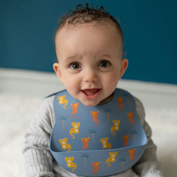 - Protect your little one’s clothes with our gorgeous Tiger and Leopard design silicone bib.